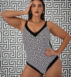 Adele ist ein Black&White Badeanzug aus der Pure Graphics Kollektion mit figurverschlankender Optik.