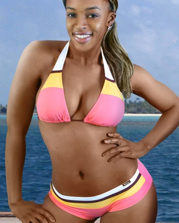 Der Bikini SANTA MONICA von BIKINI BAR ist top aktuell und sexy: Dreifarbenoptik im Streifendesign, das Top ist gefüttert.