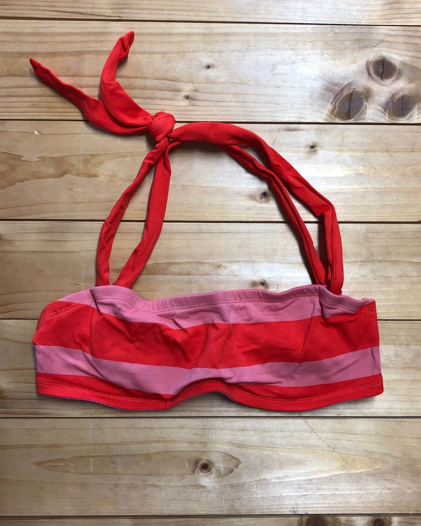 Farbenfrohes Bandeau Top mit Blockstreifen und abnehmbarem Band, das im Nacken geknotet werden kann.